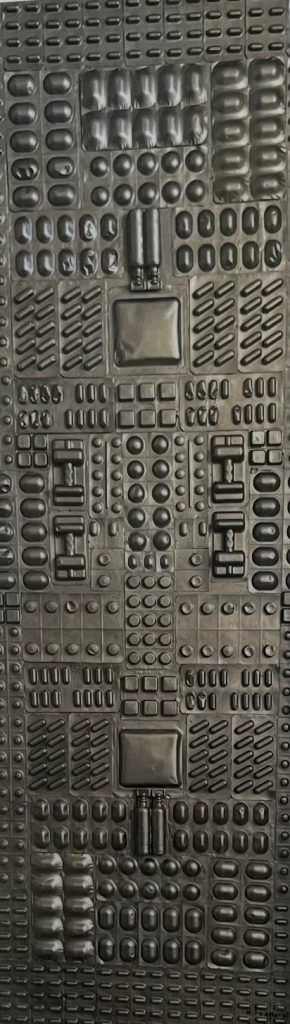 Soyez rassurés, je ne suis pas malade au point d’avoir avalé tous ces médicaments. Mais ces pilules, cachets et gélules, qui ont échappé aux affres d’une poubelle ou à l’incinération, ne pouvaient que m’inspirer… ! Regarderez- vous désormais vos emballages de médicaments avec un oeil différent ?